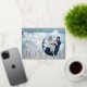 Make your family stand out this holiday season with our tranquil blue and white snowfall Christmas postcard. This design features a modern soft blue and white winter backdrop layered with elegant silver foil modern lettering. Showcase your favourite family photo inside a beautifully crafted ornament cutout. It's the perfect blend of cosy, classic, and high-end—a luxurious way to share your holiday cheer and best wishes for the New Year. Created by Simply Farmhouse Press.