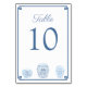 Classic Blue White Watercolor Ginger Jar Wedding Table Number
