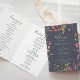 This classic blue wild floral folded wedding program is perfect for a rustic wedding. The design features a yellow, purple, white wild flowers with foliage in a rose and green watercolor background.