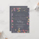 This classic blue wild floral front and back wedding invitation is perfect for a tropical wedding. The design features pink, purple, yellow, burgundy, navy and blue hand-drawn wild flowers, arranged in beautiful shapes.