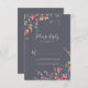 These classic blue wild floral wedding RSVP cards are perfect for a rustic wedding. The design features pink, purple, yellow, burgundy, navy and blue hand-drawn wild flowers, arranged in beautiful shapes.