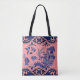 Classic Blue Willow Design on Coral Pink Tote Bag
