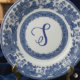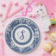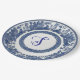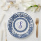 Classic Blue Willow Pattern Custom Script Monogram Paper Plate