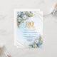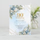 Classic Boho Dusty Blue White Floral 90th Birthday Invitation