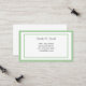 This calling card is shown in a basic classic bordered design in white with a sage green colour border trim, text is in a slate grey colour.