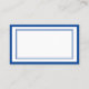 This calling card is shown in a basic white card stock in a classic bordered design in white with a royal blue colour border trim, address text is in a slate grey colour.