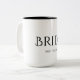 Classic black and white Bride mug. Elegant block text on a black background. Bride and groom initials and wedding date can be removed by clearing the text field.