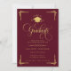 Celebrate a remarkable academic milestone with this classic burgundy and gold graduation invitation, designed with timeless elegance and formal sophistication. Featuring ornate gold script typography, decorative corner accents, and a graduation cap emblem, this invitation makes a striking statement for a high school or college graduate. The front presents a formal graduation announcement layout, perfect for highlighting the graduate’s name, class year, school, and degree. The back features a personalized graduate photo paired with a coordinated design for party details, making it ideal for a graduation open house, formal grad party, or commencement celebration. Honor this once-in-a-lifetime achievement with a personalized formal graduation invitation that feels polished, traditional, and truly unforgettable.