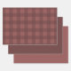 This set of wrapping paper sheets features a burgundy maroon gingham style plaid pattern with coordinating sheets in two shades of burgundy maroon.