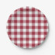 Classic Burgundy White Gingham Plaid Pattern Paper Plate