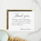 A classic serif script calligraphy highlights this wedding Thank You card. The back of the card features a black granite with gold veins and gold border. This is a no-photo Thank You card.