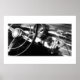 Black and white image of a classic car dashboard by photographer Joanne Mariol.