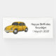A happy yellow classic car. Drawn in fun cartoon style.