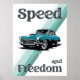Embrace the thrill of the open road with this vintage-inspired graphic! Featuring a classic car and the bold text 'Speed and Freedom,' this design is brought to life with vibrant retro colours. It is a perfect gift for anyone who loves the nostalgia of vintage cars and the spirit of adventure.