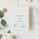 A minimalist modern celestial wedding invitation features a simple and elegant design. It includes a gold foil moon and stars that gently sparkle, set against a clean background. The invitation uses classic serif typography, which adds a traditional and formal touch with its neat and clear style. The combination of modern design, shiny gold details, and timeless fonts makes the invitation both beautiful and inviting, perfect for announcing a special and elegant wedding day.
