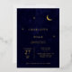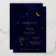 A minimalist modern celestial wedding invitation features a simple and elegant design. It includes a gold foil moon and stars that gently sparkle, set against a clean background. The invitation uses classic serif typography, which adds a traditional and formal touch with its neat and clear style. The combination of modern design, shiny gold details, and timeless fonts makes the invitation both beautiful and inviting, perfect for announcing a special and elegant wedding day.