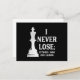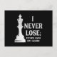 Classic Chess Design, I Never Lose; I Either Win Announcement Postcard