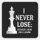 Classic Chess Design, I Never Lose; I Either Win Square Sticker