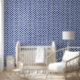 Classic Chinoiserie Scallop Pattern Blue and White Wallpaper