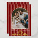 Share the warmth and meaning of the Christmas season with this elegant Red and Gold “Hark! The herald angels sing, Glory to the newborn King!” Nativity Christmas Photo Card Template. Created for families who love a classic holiday aesthetic with a rich, modern twist, this faith-filled card features a deep red striped background accented with warm, glowing gold details. The softly arched photo frame centers your family portrait beautifully, offering a polished and inviting layout perfect for heartfelt Christmas greetings.