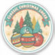 Celebrate the season with timeless charm in this vintage-inspired Christmas design. Set within a circular frame, a warm cream radial burst background with golden starbursts creates a nostalgic holiday glow. Stylized evergreen trees in festive shades of green, red, and yellow are dusted with snowy white dots, while the foreground features colorful retro Christmas ornaments in teal, red, yellow, and blue, each adorned with classic patterns. A teal polka-dot banner across the top reads “CLASSIC CHRISTMAS CHEER,” and a lightly distressed texture completes the old-fashioned look. Perfect for anyone who loves retro style and traditional holiday warmth.