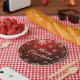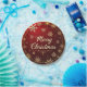 Celebrate the season with a touch of elegance. This stunning circular Christmas design features a deep red background adorned with delicate golden snowflakes and a graceful "Merry Christmas" message in classic cursive. Perfect for adding warmth and sophistication to round ornaments, holiday cards, decorations, or gift wrap. Make your Christmas extra special with this timeless festive look, now in a beautiful round shape.