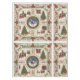 Inspired by the intricate detail of a traditional holiday quilt or tapestry, this design features a beautiful repeating pattern of framed vignettes. At the heart of the design is Santa Claus flying over a snowy village beneath a crescent moon. Surrounding him are scenes of Christmas cheer: