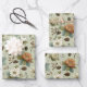 Classic Christmas Peach and Sage Green Floral Gift Wrapping Paper Sheet