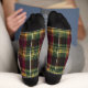 Get into the holiday spirit with these classic Christmas plaid socks, featuring a rich burgundy and green chequered design accented with festive gold highlights. Perfect for gifting or enhancing your holiday wardrobe, these socks combine traditional tartan charm with a touch of Christmas magic. Personalise them with your name or custom text to make them truly unique. Crafted for comfort and durability, these socks are ideal for spreading warmth and joy this holiday season.