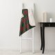 Custom-designed family name monogram blanket for the holiday season featuring classic style forest green and red Christmas plaid with personalised initial and name.