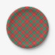 Paper plates with a classic Christmas plaid pattern in bright red and green, with blue and yellow highlights. Choose from two sizes.