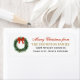Dress up your holiday mail with this classic Christmas return address label featuring a hand-painted evergreen wreath with a festive red bow. “Merry Christmas from” appears in elegant script above your family name, with editable address lines below in easy-to-read type. Personalize the family name and address to create coordinating labels for Christmas cards, holiday party invitations, and seasonal packages. A timeless, festive design that adds a warm finishing touch to every envelope.