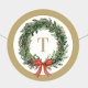 Classic Christmas Wreath Gold Monogram Initial Round Sticker