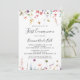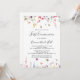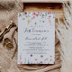 This classic colourful wild floral first communion invitation is perfect for a rustic religious event. The design features a yellow, purple, white wild flowers with foliage in a rose and green watercolor background.