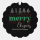 Bring holiday joy and keepsake charm together with this modern ornament Christmas card. Featuring bold layered typography with “Merry Christmas,” whimsical hand-drawn scribble tree illustrations, and a scalloped edge design, this card doubles as a festive ornament your loved ones can hang on their tree year after year. The black background makes the colours pop while your custom photo shines on the reverse side, capturing warm holiday memories. Perfect for families who want their holiday card to become part of the celebration, this unique ornament card is a heartfelt way to share love and cheer while giving a keepsake that lasts beyond the season