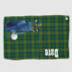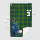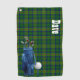 Classic Scottish plaid golf towel done in the green, blue and red clan Cranstoun tartan pattern. Graphics of a blue golf bag decorates the bottom corner. Personalise the text for yourself or as a great gift idea for any avid golfer.