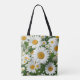 Classic daisy pattern white floral fields greenery tote bag