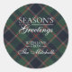 This elegant Christmas label features a plaid pattern and prominently displays the classic message "Season's Greetings." It includes shades of green, dark blue, and red, evoking a classy and nostalgic English holiday atmosphere. You can easily personalize the label with your family's name. This sticker is perfect for decorating your Christmas mail in a traditional colonial style, as well as for a charming country cottage or log cabin theme.