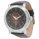 This watch is has a classic dark brown face. It says "Classic Time Keeping"