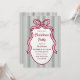 Classic Dark Green Stripes & Pink Bow Christmas Invitation