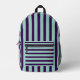 Classic Dark Purple and Light Teal Striped Printed Backpack