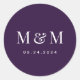 Classic Dark Purple Monogram Typography Wedding Round Sticker