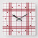 Classic Dark Red Farmhouse Plaid Pattern On White Square Wall Clock