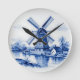 Classic Delft Blue Windmill Canal Scene Round Clock