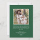 Share heartfelt holiday greetings with this photo holiday card featuring a rich green background and a traditional double white border frame. “Merry Christmas” is displayed in coordinating white lettering above your family photo, with your family name and year printed below. The classic green and white colour palette creates a festive and timeless look that’s perfect for the holidays. The back includes a square photo with space for your personalised message, making this card a beautiful way to share Christmas joy with family and friends.