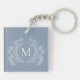 Classic Dusty Blue Floral Crest Monogram Keychain