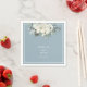 This elegant design features watercolor ivory flowers with lush green foliage on a dusty blue background. Personalize with your own details.