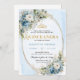 Classic Dusty Blue Gold Greenery Quince Invitation