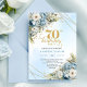 Classic dusty blue watercolor florals 70 birthday invitation