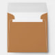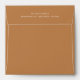 Dusty gold square envelope with a return address printed on the back flap on two lines.
